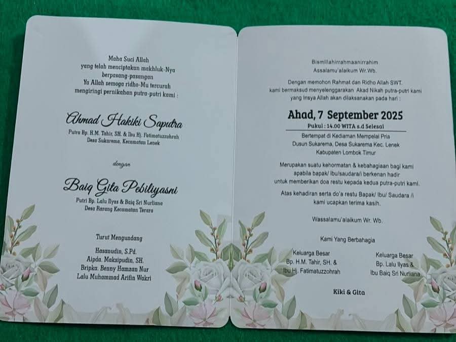 Akad nikah akan digelar di rumah calon mempelai Pria yakni di Dusun Sukarema Desa Sukarema, Kecamatan Lenek Kabupaten Lombok Timur pada hari Minggu 7 September 2025.
