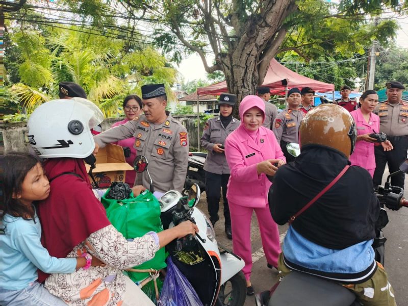 Kegiatan sosial tersebut juga melibatkan anggota Bhayangkari yang turut membagikan paket takjil kepada para pengguna jalan dan masyarakat yang melintas menjelang waktu berbuka puasa.